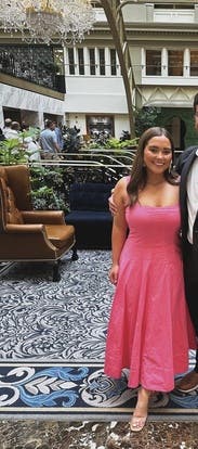 This dress was perfect and so flattering! I got so many compliments and hit in all the right places. The straps do tend to slip down at times but wasn’t a big deal to me. Would definitely rent again and probably buy!