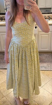 No wonder everyone loves this dress. The cut is absolutely fantastic. The princess’y waist, the way the top is cut to hide your arm pit area, the light corsetting. I just wish it came in other patterns I’d buy them all. As cute as this yellow is it’s not totally my vibe but I don’t care because the fit and cut are amazing.
