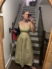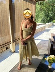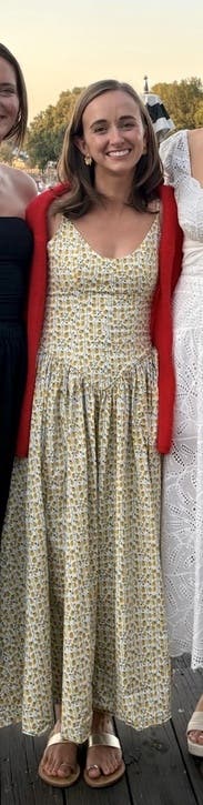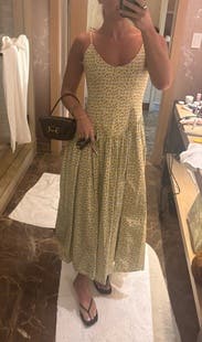 This was so unbelievably flattering! I bought the navy blue version but rented the yellow immediately after! It was the perfect dress for a beach weekend with a friend!