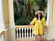 Yellow seems to be the "It" color this spring and I have to say, I'm feeling it. Nice weight, crisp cotton, empire waist dress with some Bridgerton vibes courtesy of the neckline and cut, will make you feel better regardless of your mood. Terrific length to display your legs and versatile, this dress is a winner. The cotton will wrinkle - deal with it. Fully lined. Sunshine personified.