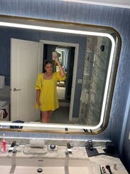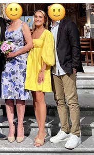This was a fun dress to wear out! I am not someone who particularly looks good generally in yellow but it’s a light tone that isn’t too bright. The fabric is good quality. 10/10 rental!