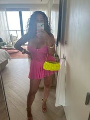 This is a gorgeous bag and looks great with some of the neon dresses available on RTR - I will say that it doesn’t fit a ton of stuff inside.