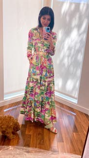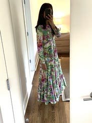 This dress is gorgeous! The way it swings when you walk; the fullness of the skirt! The print is fun too. Lots of compliments!!