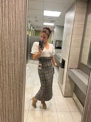 The skirt is perfect pencil silhouette and I received tons of compliments. Paired with a crisp white mens wear shirt and high heeled black knee high boots. Loved this look!