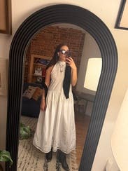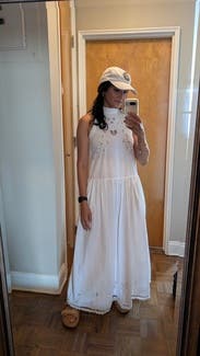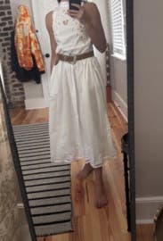 I really had high hopes for this dress. First I love a white dress and second I love the embroidery. However, it’s shapeless and where the bodice attaches to the skirt makes it an unflattering look. It’s also a lot of material and runs big. I belted it and felt it was ok. I think this is a tall willowy person dress.