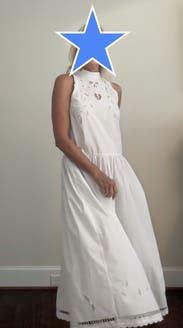 This dress was sort of all around, not great. The way it ties around your neck is really uncomfortable. You can’t wear a bra with the dress. And the way the seam hits around your hips isn’t the most flattering.