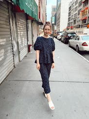 This is the matching set of my NYC dreams. I felt so effortlessly chic. I think I would size up on the pants to a medium and sized down on the top to an xs if I were to rent again. The pants were just slightly too tight for my liking, but I think with the top being oversized it still worked for me. Would love to own this. For reference the top and pants are both size small.