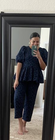 This is a really versatile option / the pants are super comfortable (elastic waistband so there’s some flexibility in the fit). I’d definitely recommend getting the shirt along with the pants / lots of good options for wearability and the chance to dress it up or dress it down!