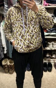 Rented the whole outfit - hoodie and pants for a weekend in Vegas. This outfit has a wild print but super fun. It is soft and comfortable and the hoodie has pockets which I love. Got a ton of compliments on this! True to size - rented the XL but think the Large would have been a better fit for me.