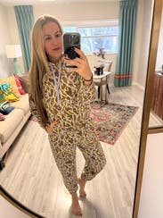 Normally I don’t wear animals prints, but I could not get enough of the sweatshirt and the matching pants. I wore it everywhere: lounging at home, walking the dog, school pick up, working from home, the grocery store, any other errand I could think of, and even Disneyland. I got compliments every single place I wore it. A lot of those compliments were from men in their 20s. They appreciated the fashion. Hands down one of my most worn and favorite rentals. Totally unexpected. The sweatshirt was comfortable, but slightly structured. Warm, but not suffocating. Just fabulous all around.