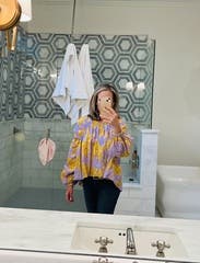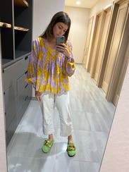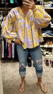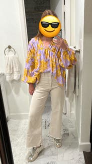 I had so many compliments on this shirt! The colors are vibrant, the poofy sleeves are fun, and it was just easy to wear.
