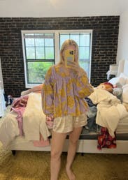 I loveeeeed this top. Great for work or a nice dinner! I definitely could’ve gotten a small but the medium made for a cute oversized look. The colors are so vibrant. Would definitely rent again.