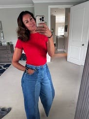 wore it over a dress (pictured), wore it with wide jeans, wore it with shorts... loved it. Flattering with the middle line.