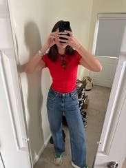 This was a cute, casual top that added a fun pop of color to my dinner outing. It was true to size.