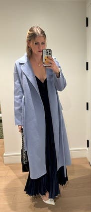 Love this coat. Gorgeous color and worked out well for spring in MKE. The belt is a little bit too long for my taste, but tie it up and you are golden.