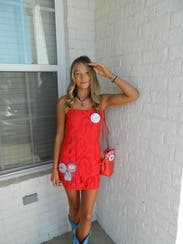 This dress was very short but cute. I rented it. The wrong season so I didn't get to wear it.