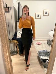 I was surprised by how much I liked this skirt! It was simple but easy to pair with different tops to dress up or down. I travelled in it and it was shockingly comfortable for the plane, too. The slit was just enough to make it more elevated for a night out.