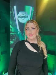 This item fit well, material is on the thicker side so it's slimming, the cut out is significant but doesn't go too low...however a standard bra strap will show on that side unless it is taped to the shoulder. Love this shirt, second time I've rented this