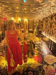I’m so drawn to red and this did not disappoint. Note: this is low cut, so your cleavage will show. I wore nipple stickers and am small chested. Had a little issue with the dress sliding down but maybe having a larger chest would help keep the dress up more! Amazing construction and a lot of compliments from this one!
