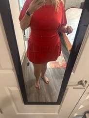 I loved renting this dress. The fabric is high quality and love the bright red color.