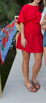 I wore this dress for an event that required red and on another occasion for work. The color is definitely eye-catching. While other reviews mentioned an awkward fit, this multimedia fabric dress can be styled in a few ways: * For a shorter look with tummy coverage, let the fabric gather at the waist. * For a smooth, full-length silhouette, extend the dress down. * For a completely different look, tuck the bottom fabric under and wear it as a batwing top. The vibrant red makes it a standout piece, and if you need something red, this dress is definitely worth a try.