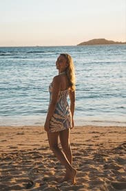 The Palma Poplin Mini Dress by Suboo brings instant vacation-ready chic with its fitted halter neckline, gathered waist, and bold palm-print mini silhouette. Perfect for sunny day trips, seaside lunches, or casual rooftop evenings—just add sandals and statement accessories for a relaxed yet stylish look.