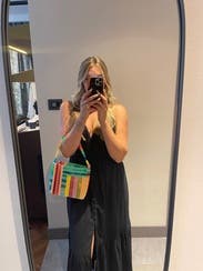 This bag was the perfect piece to spice up every look. It was the perfect size for keys and wallet but doesn't hold much more. Such a fun bag - highly recommend!