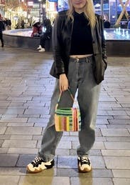 I knew as soon as I had this bag in my hand that I’d be buying it haha- it’s such a beautiful statement bag, so unique and honestly very versatile! Guaranteed to start a conversation. It also fit more than I expected- phone, keys, wallet, hand sanitizer, a couple of lip glosses… truly a special bag.
