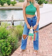 This purse is everything!! Love the trendy, beaded style and the gorgeous rainbow colors. It is super fun and bright and adds a great pop of color to any outfit. I also found it to be really functional--just enough for your phone and a few little items. Kind of looks like something you made at summer camp, but in the best, most high-fashion way!