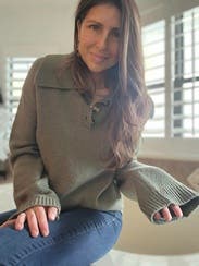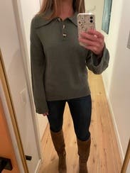 Love this sweater! Fit was perfect, beautiful color, and super comfortable. I loved the look with a pair of jeans and also dressed up with dressier khaki colored pants and some jewelry.