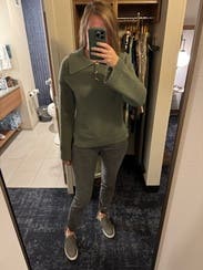 I rented this to go home for Thanksgiving and I wore it almost every day of my trip. Easy to layer, but perfect on its own. Comfortable and classic. Loved it. Ran TTS.