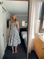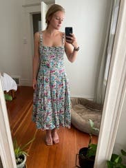 Wore this to an outdoor baby shower. It was okay. The straps were a bit long and required a bit of constant adjusting. Definitely a super comfortable dress, really flowy and flattering as it doesn't cling to you. Would consider renting again