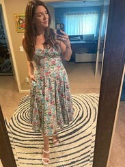 Wore this dress for a baby shower. Loved the cut, fabric pattern and material! Would definitely rent it again, considering purchasing as it's a great dress that can be worn to so many things.