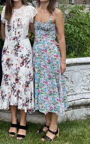 Perfect summer dress for my hourglass figure. It was lower cut on the chest and showed the perfect amount of cleavage - whether with the in laws or out at the bar. Received sooo many compliments. Hubby loved it. Since it does sit lower on the chest the strap can fall off your arm once in awhile. But since the chest area is elastic I never had a nip slip and it didn’t bother me too much. I would keep/buy this dress but I have worn it so many times and it’s been photographed a bunch. Passing it along to the next gal <3