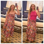 I wore this both as a dress and as a skirt and much preferred it as a skirt! As a dress it looks kind of casual/bathing suit cover/up. As a skirt it feels a bit more elevated!