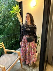 I wore this dress the my baby shower and absolutely loved it. It is light and airy, and honestly perfect for a baby bump even though it’s not maternity. I am 30 weeks in these photos for reference. I would recommend tying the straps in a knot before a bow, just because they are thicker. Would definitely rent again!