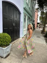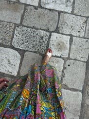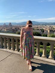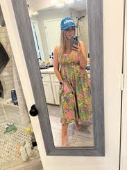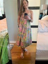 The colors and pattern on this dress make it amazing! I loved how flowy it was. This dress is easy to wear in the summer months. I wore multiple times while I had it.