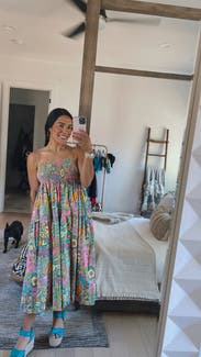 If you are a color lover this one is for you! I wore the heck out of this while I had it - on a date, to work, to run errands... so much fun and so bright! Instantly in a good mood in this dress. I loved the adjustable straps and that the back is lower than most smocked dresses!