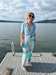 I enjoyed this fun jumpsuit. It's linen and wrinkles easily. Might be tough to wear if you have a larger bust. It was a bit long on me but fine with wedges.