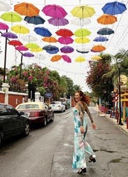 It tends to make you look wider and flattens your chest, so not the most flattering on a petite frame, but the cool linen fabric and tropical print are great for summer day or night!