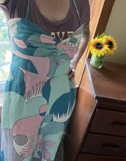 Absolutely loved the pattern and got compliments everywhere I went. Very comfortable and breathable material. The waist is short and it’s not the most flattering. I also recommend something under it if you don’t want the girls on display.