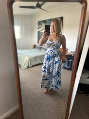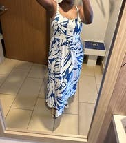 Nice dress, very comfortable. The material is little too heavy, making it too hot for the Maui humidity. The top was too lose & falling off. I had to pin the straps together to wear it. But overall a beautiful tropical dress.