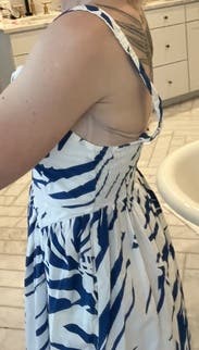I was surprised how much I liked this dress. Flattering cut, pockets, and fun print. I received compliments each time I wore it. The positioning of the straps makes it hard to wear a bra. I am rather small so it wasn't a problem to go without.
