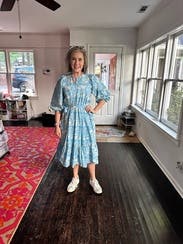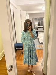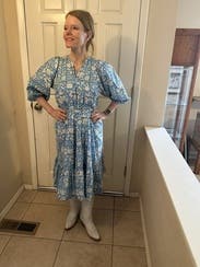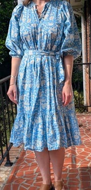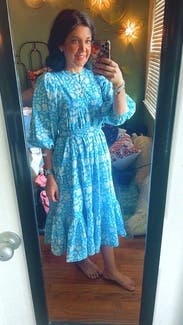 This dress got so many compliments! The blue is even prettier in person, but the fabric is a bit heavier than it looks, and the sleeves/top ran a little big.