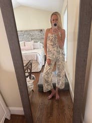 This set was so fun! I’m really tall with long legs and didn’t find the pants to be too short which is usually the case! The pants are more of a denim feel and heavier than the top which I appreciated. Wore out to dinner and lunch once!