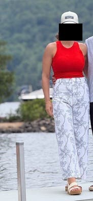 I love fun pants with prints. This was a great pair! Wore with a red top.