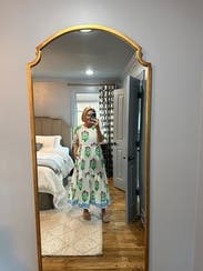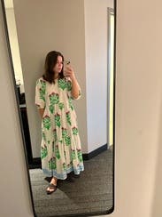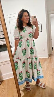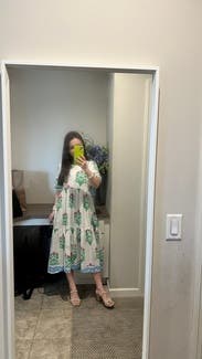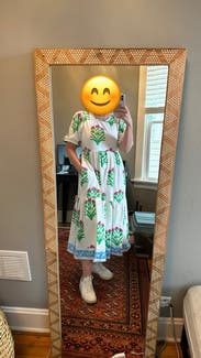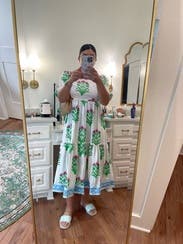 This dress begs to be brought on vacation! Cool, has pockets, cute print, not too long for us short girlies, and comfortable. The chest area was a bittttt small for me and mashed my chest like a pancake, but I didn’t mind 🤣 Would definitely rent again!