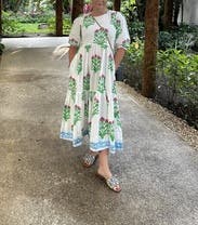 Such a cute dress! I receive nonstop compliments in this dress. It is very modest. 100% cotton, but not as breezy as I’d hoped, still love it. Would love to buy it.