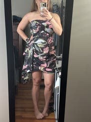 I wore it twice for date night and on vacation. I’m usually a 10 or a 12 depending on the brand, but the 10 would not zip fully, so needed to switch to a size 12. I’m a C cup and the upper part of the dress was a little big, but I wore a strapless bra and problem solved. This dress is corset-like, not fully a corset, but it does have plastic sticks inside that make it a little uncomfortable after getting stuffed at dinner. The fabric is excellent quality, soft and durable. I absolutely loved the asymmetrical left side of the dress - it is very flattering. I would size up, depending on your body type.