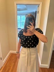 This top was so cute! I will say it was an awkward length/fit at the waist so I ended up tucking it in to avoid the fit issues. I would definitely rent again.